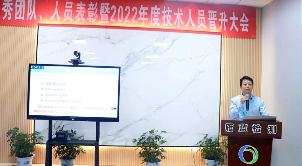 2022年5月13日,雁藍(lán)檢測在江寧本部召開2021年度表彰暨2022年度職務(wù)晉升大會。公司總經(jīng)理張布偉、副總經(jīng)理蔡同鋒,江寧本部和江北分場所相關(guān)人員參加會議,會議由副總經(jīng)理周君主持。